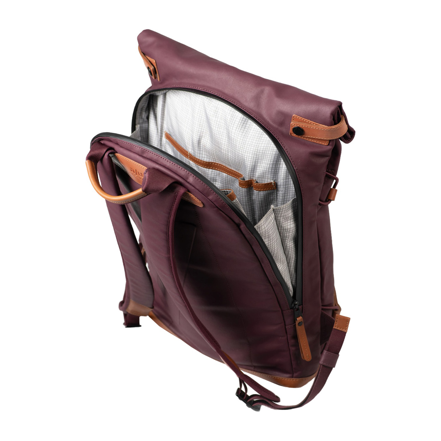 This favourite comes from the "Japan" collection by aunts & uncles and is called Osaka. The roll-top rucksack is made from a lightweight cotton fabric with a water-repellent, silk-matt coating and leather details on the front.