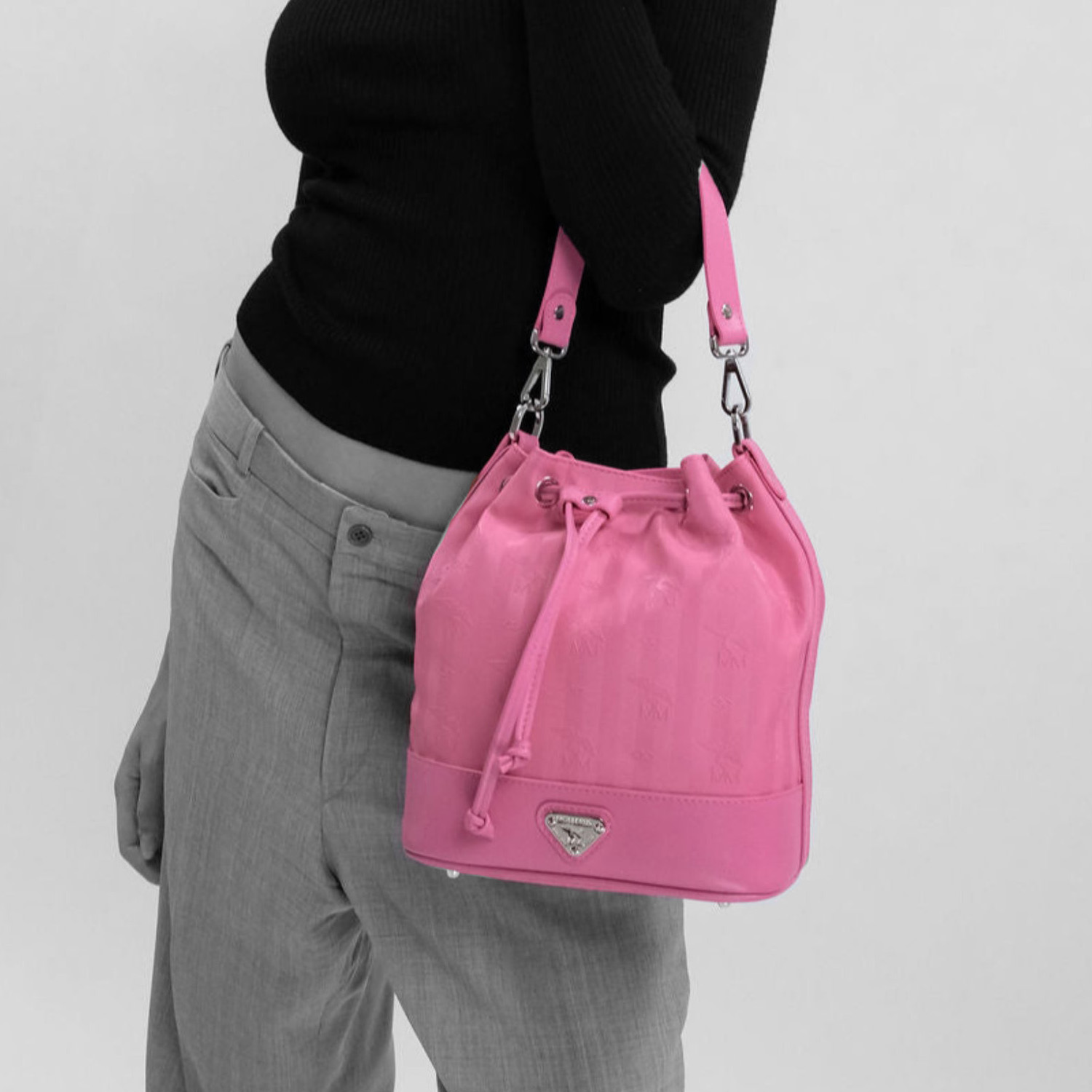 Our favourite closes with a colour-coordinated drawstring. The spacious main compartment has a large zip pocket, two slip pockets and a leather lanyard with a snap hook. In addition to the detachable shoulder strap, there is also a slightly wider, individually adjustable and also detachable calfskin shoulder strap.