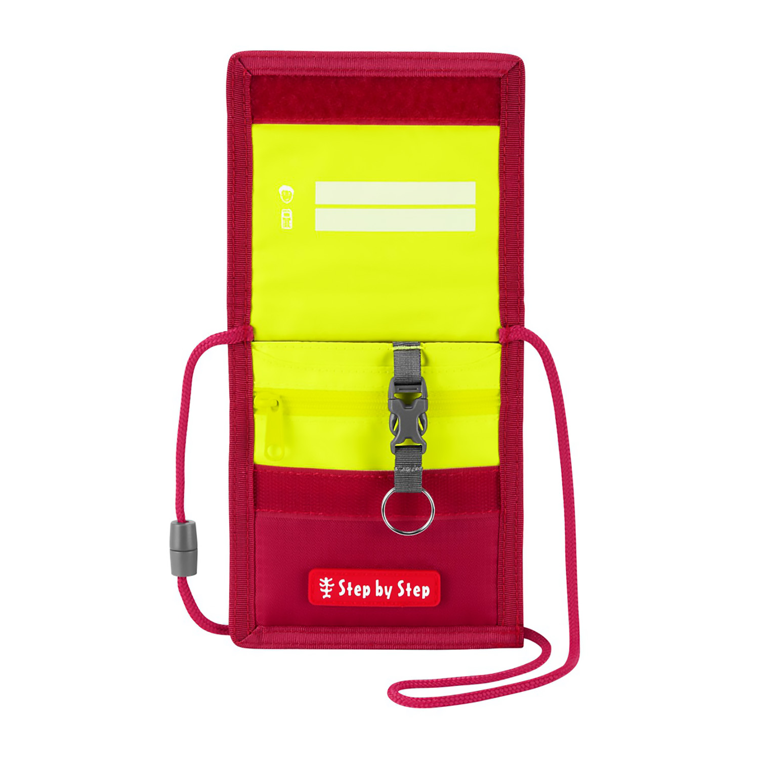 Step by Step's neck pouches are available in various designs to match the satchels. They are the perfect choice for safely storing small change, school ID cards, bus tickets, etc. They close with Velcro and have a removable key ring.